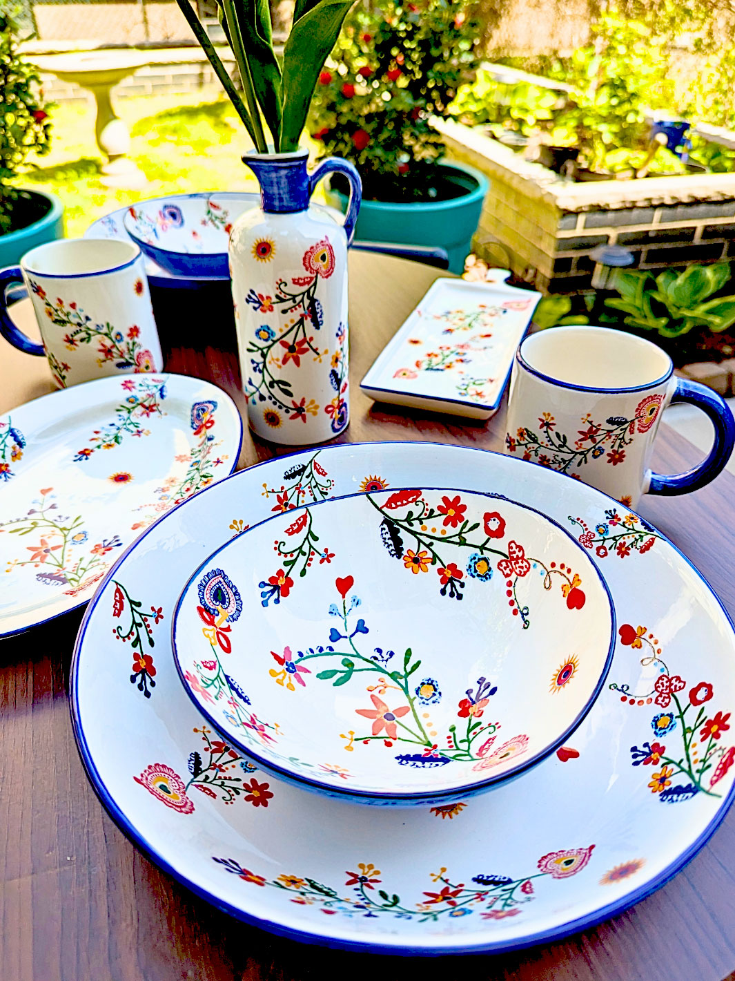 When you put together modern colorful patterns with ancient techniques, the result is a vibrant collection of decorative and utilitarian ceramic pieces that will fill your table and home with joy!