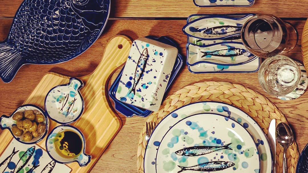 A curated selection of handmade and hand painted colorful dishes, platters, bowls and serving trays with a modern look inspired by the symbols of Portugal, made in Caldas da Rainha, the city of ceramics.