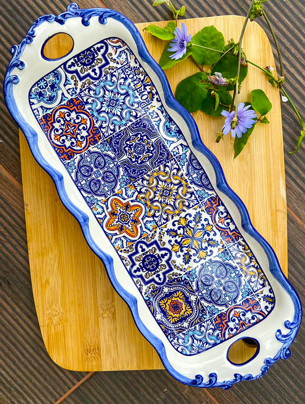 No matter what your style preference or culinary mission is, at We Are Portugal, we have trays and platters that are exactly right for you. Handcrafted in Portugal by real artisans and made of several types of materials including stoneware, ceramic, clay, stone slate and recycled fabric, we have options for any decor motif and affair. Perfect for serving snacks, desserts and appetizers, our ceramic serving platters will take the presentation of your bites to new heights with hand painted floral motives. Bring bread straight from the oven to the table on an ethically made from recycle fabric round platter. Arrange cheeses and charcuterie on a modern stone slate serving board. Available in a multitude of sizes, shapes and colors, we have serving platters that match your personal style, weather its rustic, modern or farmhouse.