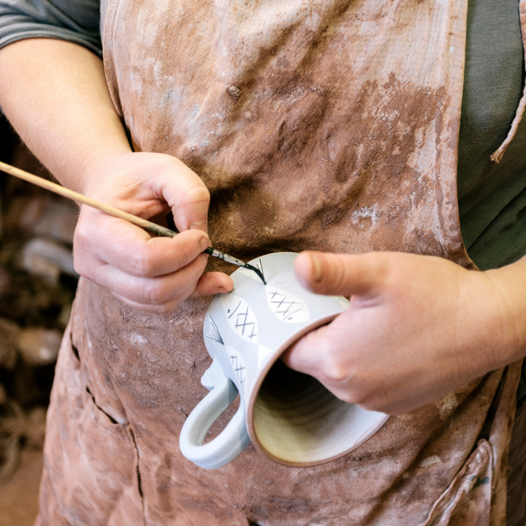 That’s the case of the Fino family. Led by Sergio Fino, the artisans at Faianças Irmãos Fino expertly craft a collection of decorative and utilitarian ceramics. Hand painted, with clay tones, in the traditional Portuguese blue and white, representing geometric patterns or natural motifs, they keep alive the ancient Portuguese traditions of producing ceramics.